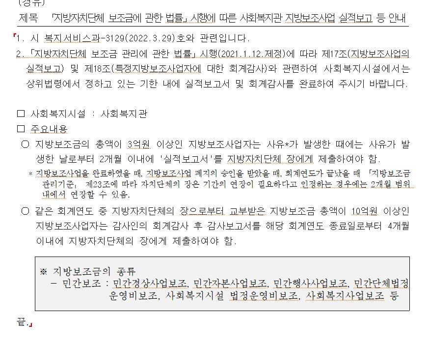 각 기관마다 보조금의 규모에 따라 검증 비용도 비례해서 높아지기 때문에