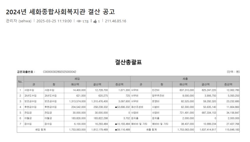 사회복지기관들은 운영의 투명성을 요구받고 있고 매년 예결산서 등을 공시하도록 되어 있고