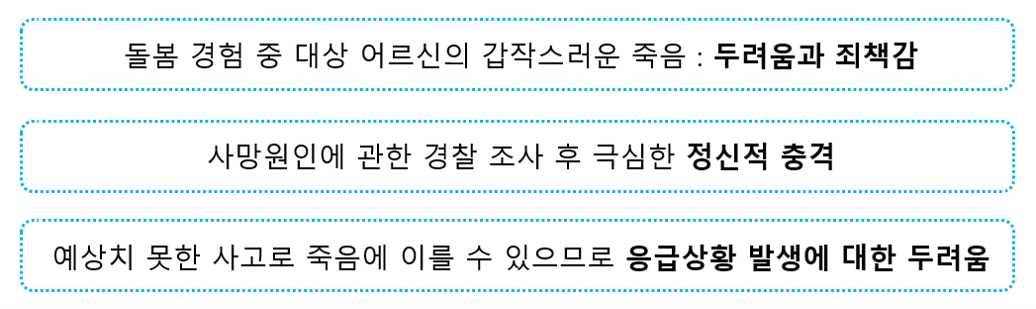 우선, 서비스를 제공하던 이용인의 갑작스러운 죽음은 두려움과 죄책감을 불러일으킬 수 있습니다.