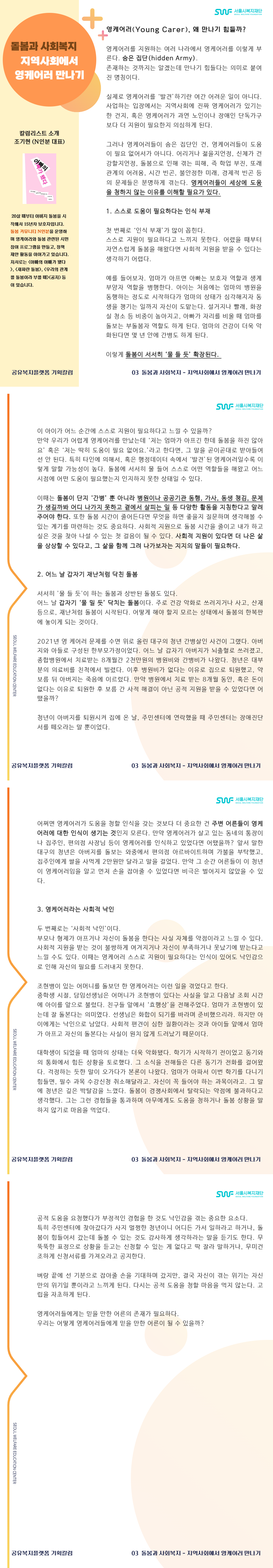 돌봄과 사회복지 지역사회에서 영케어러 만나기