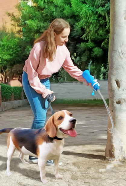 사진설명: 반려견 매너 보틀을 홍보하는 한 스페인 온라인 사이트의 광고용 사진 ( https://petioto.com/products/petioto-botella-de-agua-plegable-500ml-manten-tu-ciudad-limpia-y-libre-de-olores-diluye-el-pipi-de-tu-mascota-en-cada-paseo-libre-de-bpa-silicona)