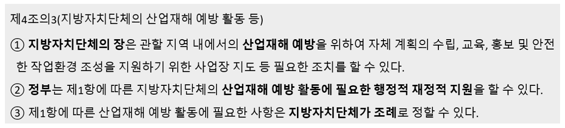 산업안전보건법 제4조의3(지방자치단체의 산업재해 예방 활동 등)