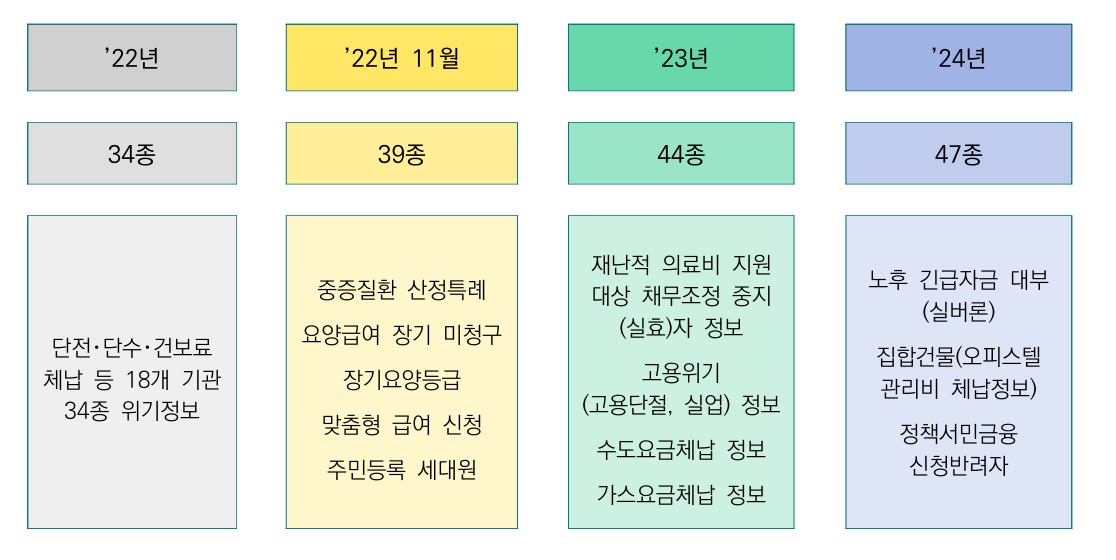 (그림: 2026 찾아가는보건복지 서비스안내 p.9 => 복지 사각지대에 놓인 위기가구 발굴을 위해 질병・채무・고용・체납 등 의심가구 위기정보를 ‘복지사각지대 발굴시스템’에 연계 확대)