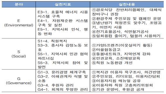 구성하였다는 점에서는 ESG복지경영에 대한 구조화를 시도한 것으로 평가할 수 있다.