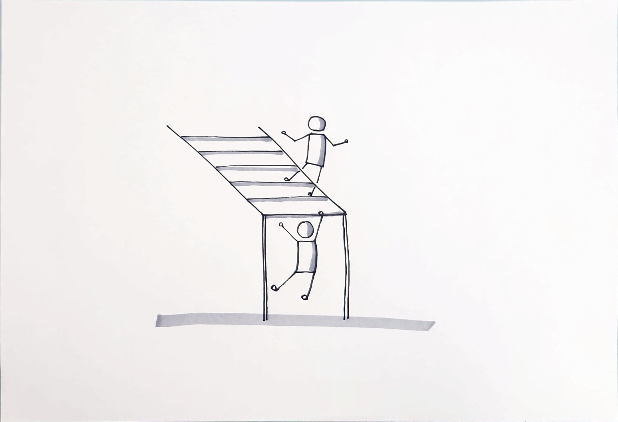 목적 불명으로 불명확한 조직의 미래, 명확하지 않은 리더의 메시지는 사람들을 모이지 않게 합니다. 겉으로 보기에는 복리후생도 좋아 보이고 산업재해 예방활동도 열심이지만 성과가 나지 않는 것은 사람들이 두려워 모이지 않기 때문입니다. 이 조직에는 '구름 사다리'가 필요합니다. 다칠 수도 있지만, 실패할 수도 있지만 도전할 수 있는 문화이죠. 비난하지 않고 서로를 격려해주는 문화입니다. 위험하지만 놀이의 목적과 룰이 명확하기에 두렵지 않습니다. 조직의 '구름 사다리'란 실험하는 문화입니다. 구성원들을 모이게 하고 의견을 나누게 하며 다시 도전하는 문화입니다. 지하실 창고에 분해해 놓은 조직의 구름 사다리를 꺼내어 봅시다.