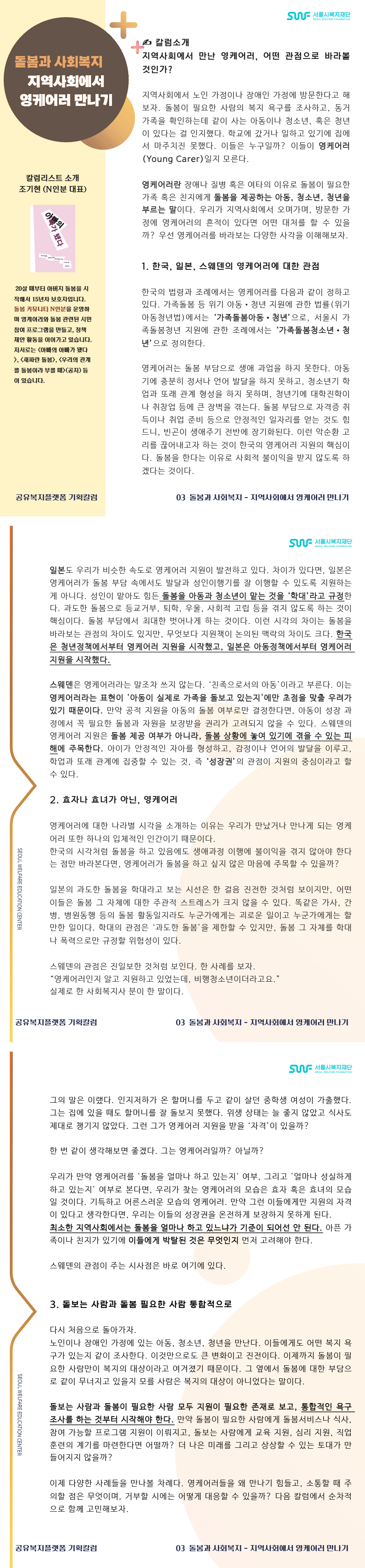 공유복지플랫폼 기획칼럼 03 돌봄과 사회복지 - 지역사회에서 영케어러 만나기