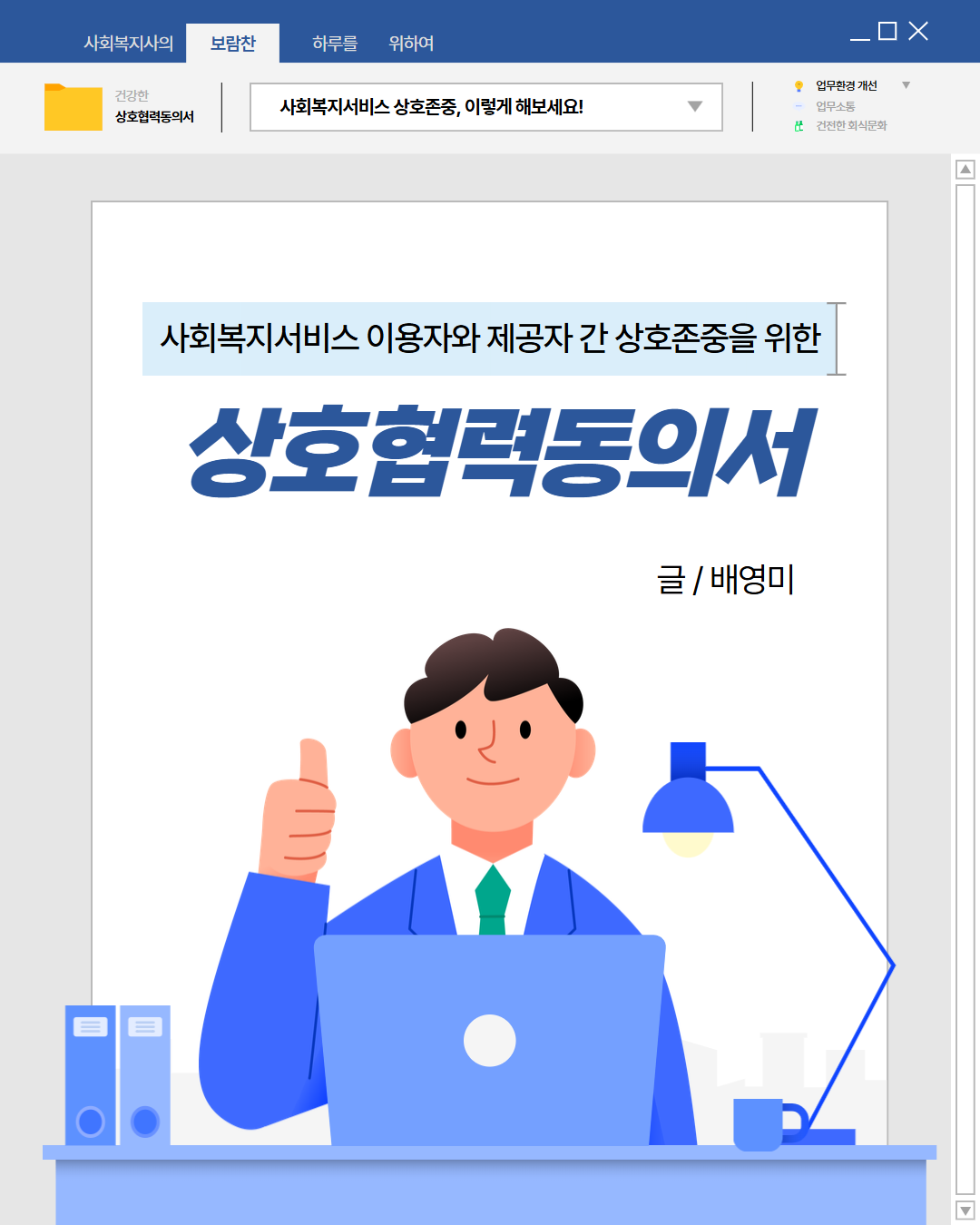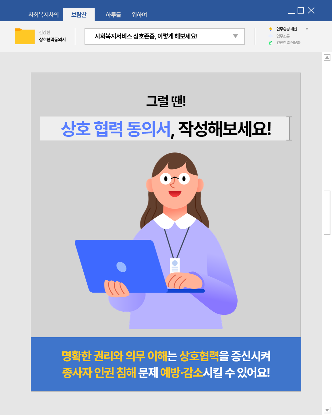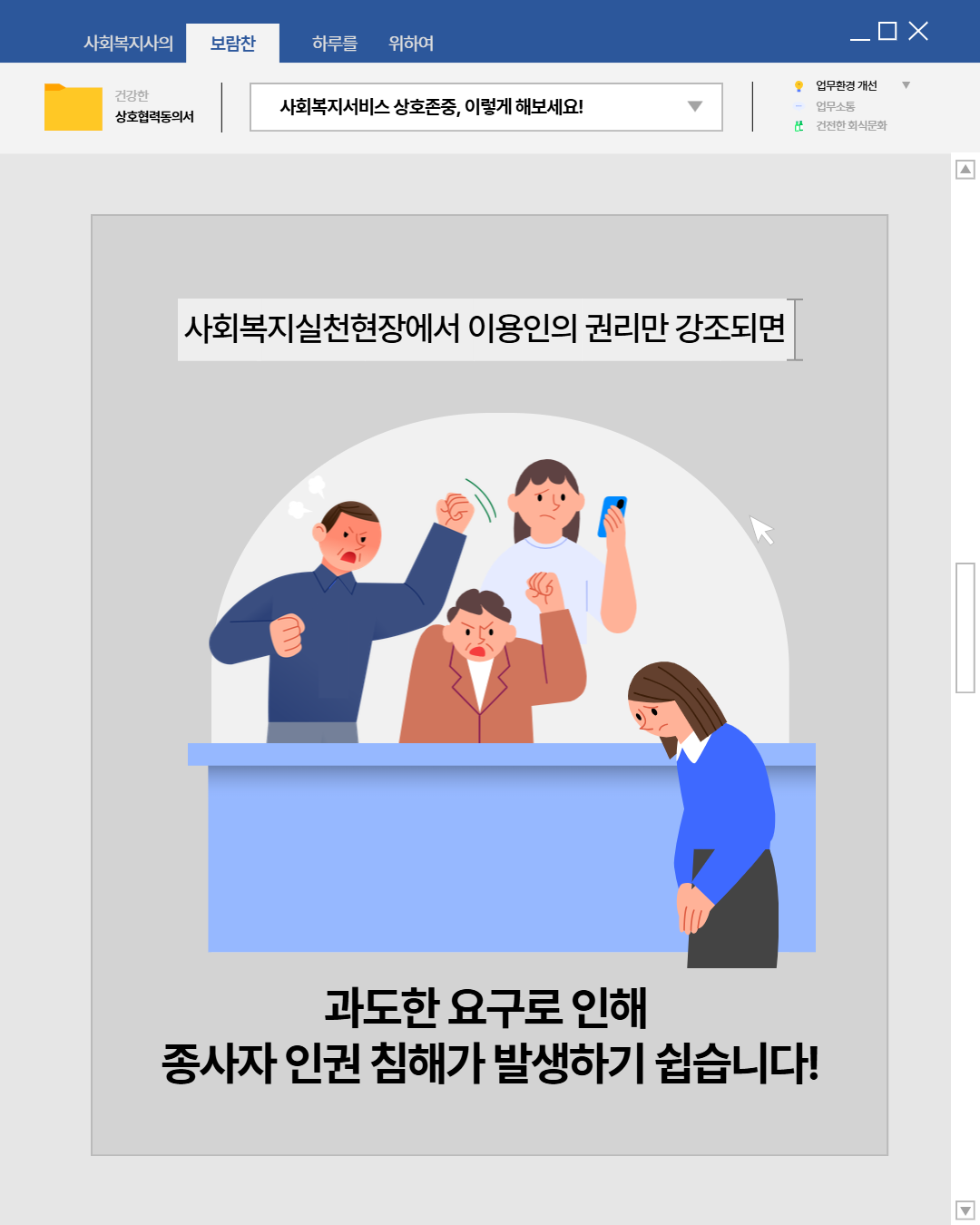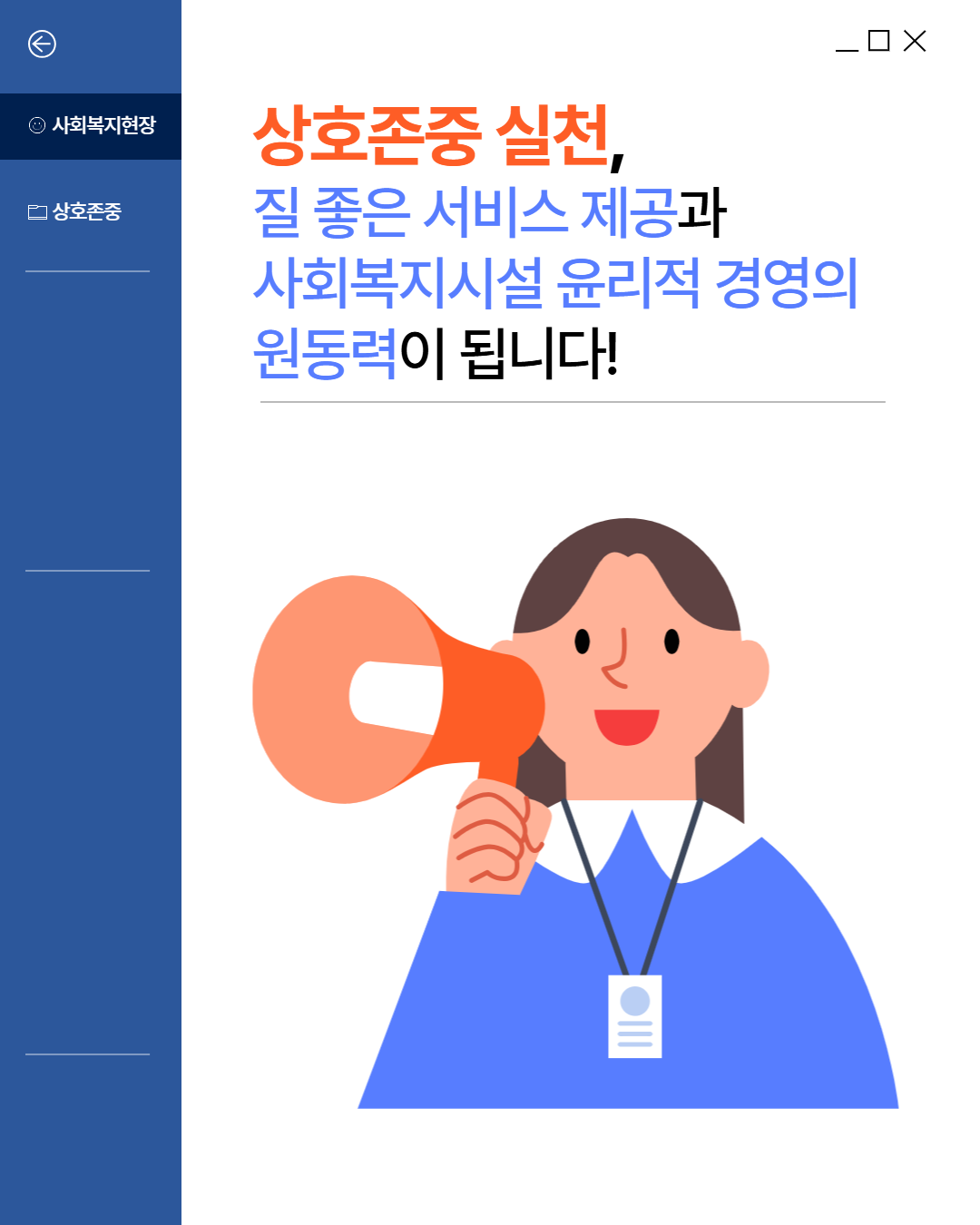 좋은 서비스가 안정적이고 지속적으로 제공되기 위해서는 ‘서비스 제공기관’과 ‘이용인(보호자와 가족)’ 모두의 노력이 필요한 것이죠.
