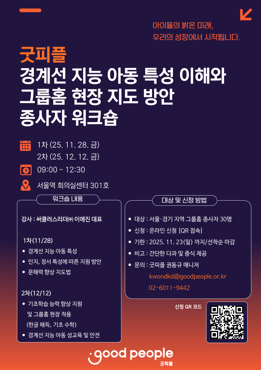 [굿피플 경계선 지능 아동 특성 이해와 그룹홈 현장 지도 방안 종사자 워크숍]
