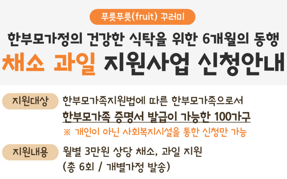 3. 지원내용 : 연 4회 식료품 및 생필품 지원(1가정 당 연 100만원 상당 물품 지원)