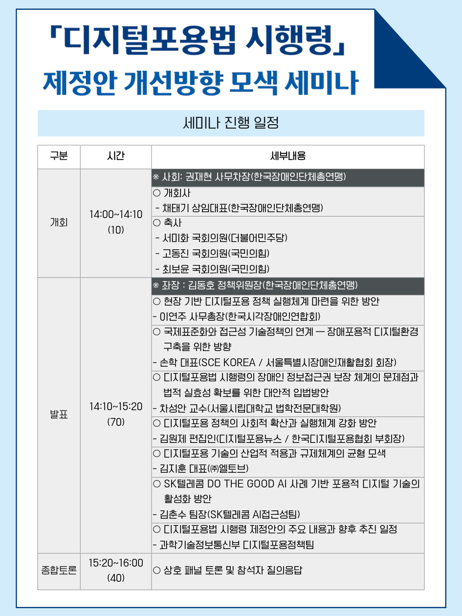 「디지털포용법 시행령」 제정안과 관련한 다양한 의견이 논의될 수 있도록 많은 관심과 참석 부탁드립니다.