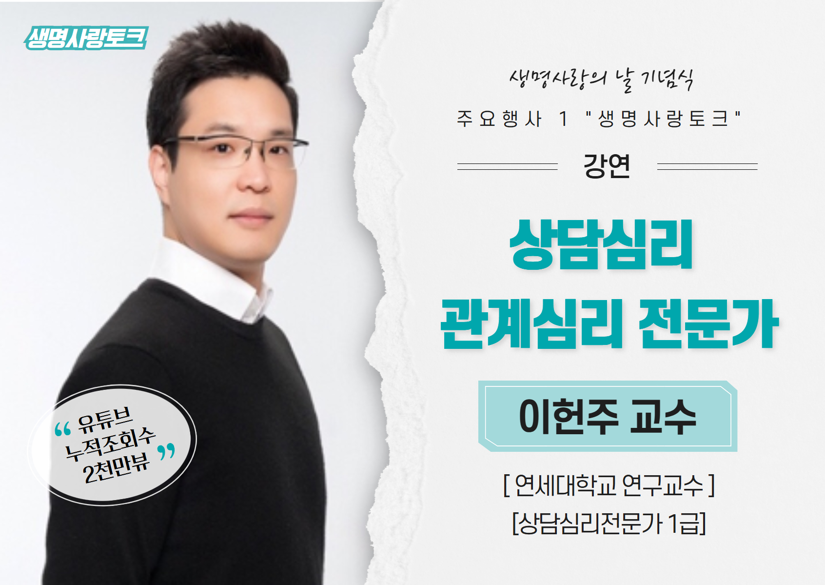 이번 기념식에서는 이헌주 교수님께서 “생명사랑 토크”를 진행해 주십니다.