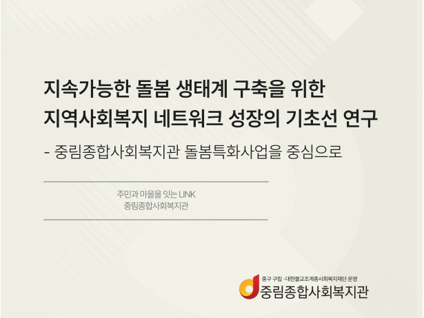 지속가능한 돌봄생태계 구축을 위한 지역사회복지 네트워크 성장의 기초선 연구 - 중림종합사회복지관 돌봄특화사업을 중심으로